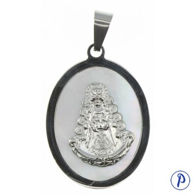 MEDALLA NACAR OVALADA B. PLATA CON SILUETA