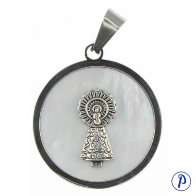 MEDALLA NACAR REDONDA BAÑO DE PLATA CON SILUETA