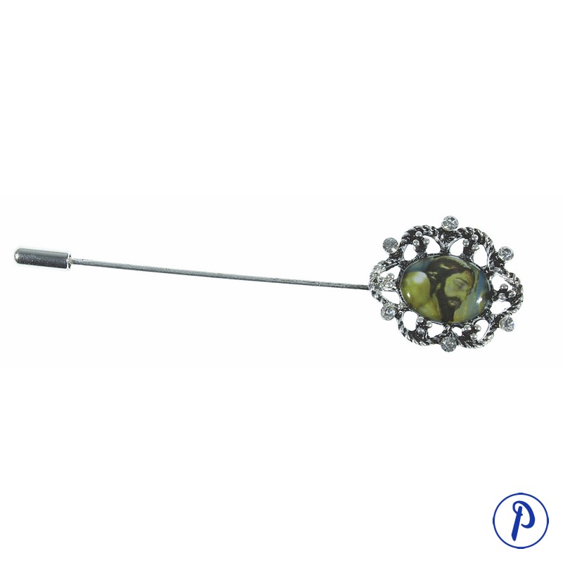 Agujón bañado en plata con adorno de piedras brillantes. Con imagen personalizada. Tamño 9 x 2,5 cm.