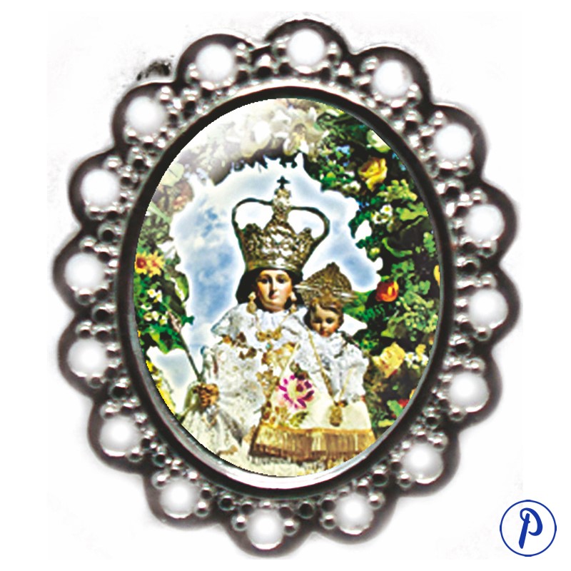 Broche calado en forma oval. Bañado en plata. Con imagen personalizada.