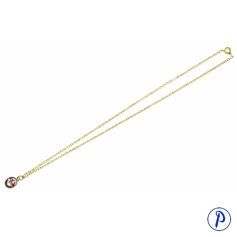 Cadena en baño de oro con eslabones y cadena con imagen personalizada. Medida aproximadas, 22,5 x 0,20 cm.