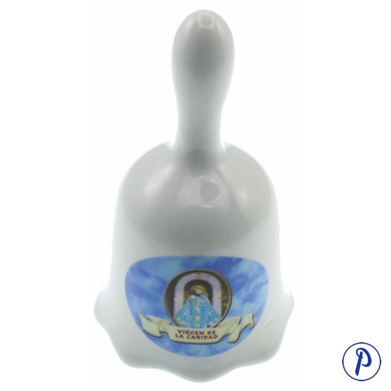 Campana de porcelana blanca con imagen personalizada. Tamaño grande, aproximado 13,5 x 8 cm.