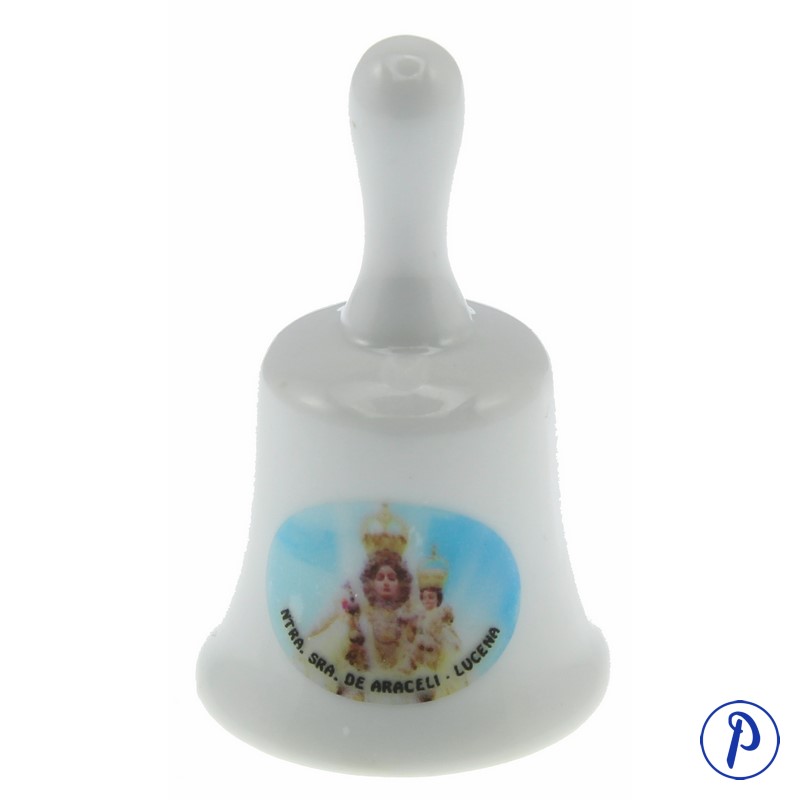 Campana de porcelana blanca con imagen personalizada. Tamaño pequeño aproximado 5,5 x 3 cm.