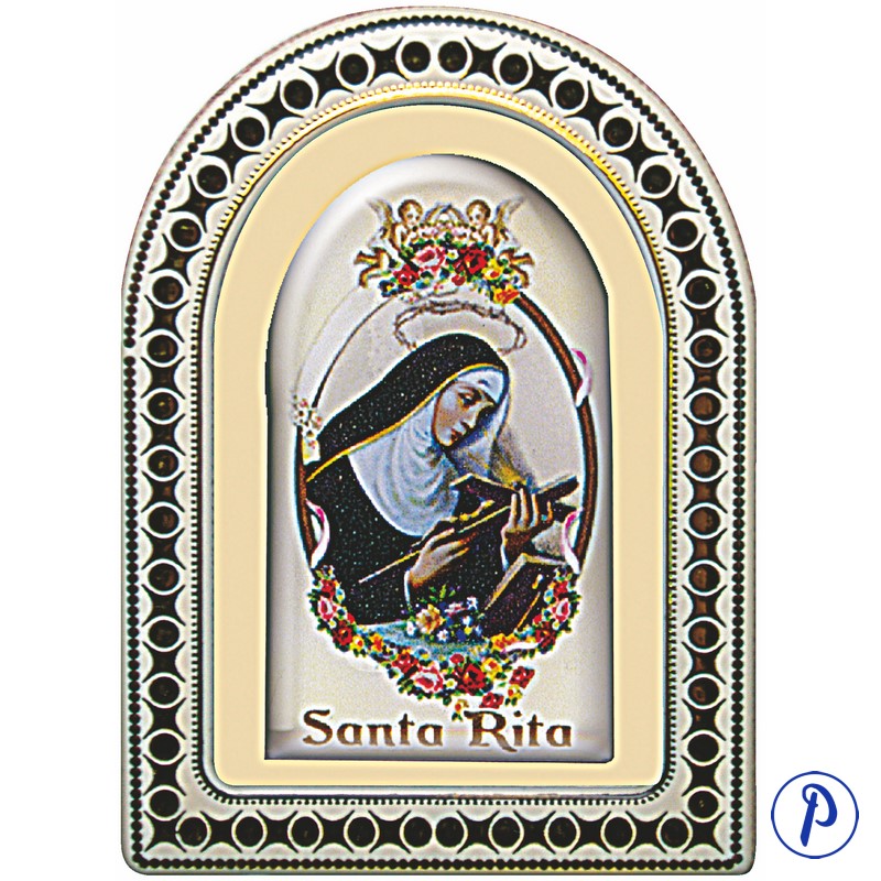 Repié de sobremesa. Capilla con adornos geométricos y línea dorada con imagen personalizada. Tamaño aproximado 8 x 6 cm.