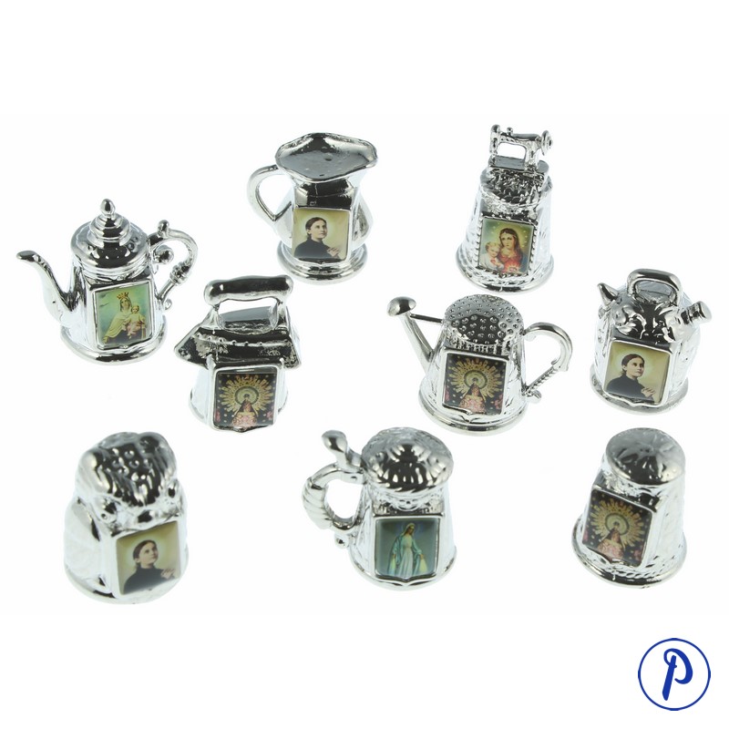Dedales surtidos en diferentes formas metálicas con imagen personalizada cuadrada.