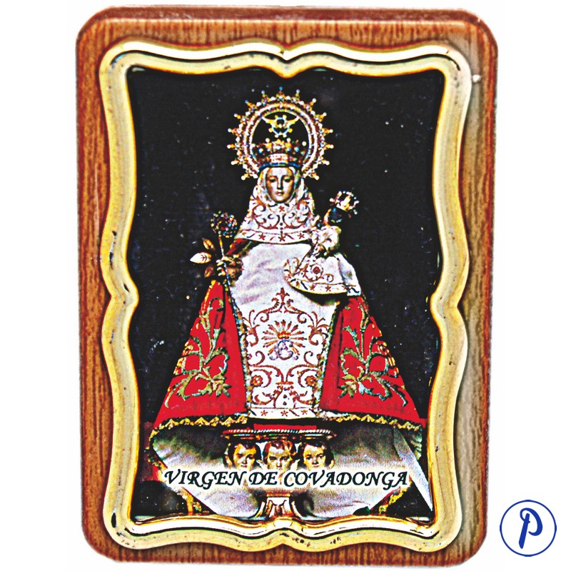 Portafotos rectangular en simil de madera con imagen personalizada rodeada por orla dorada. Tamaño aproximado 7,5 x 5 cm.