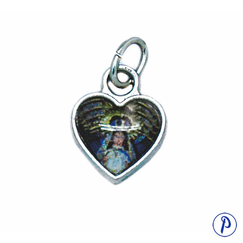 Medallita en forma de corazón en niquel con imagen personalizada. Tamaño aproximado 1 x 10 cm.
