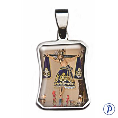 Medalla de acero en forma oval con adornos. Imagen personalizada en fotoesmalte. Tamaño aproximado 3 x 2,5 cm.
