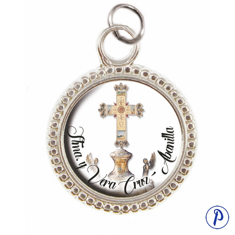 Medallita en niquel con forma redonda e imagen personalizada. Tamaño aproximado 2,5 x 2 cm.