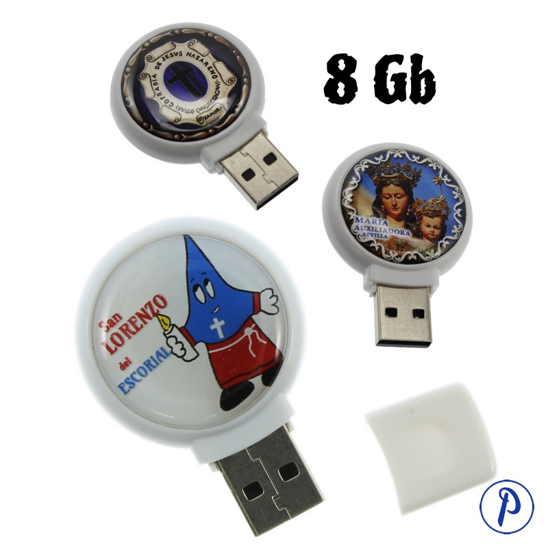 USB de 8 Gb con foto personalizada. Contiene tapa.