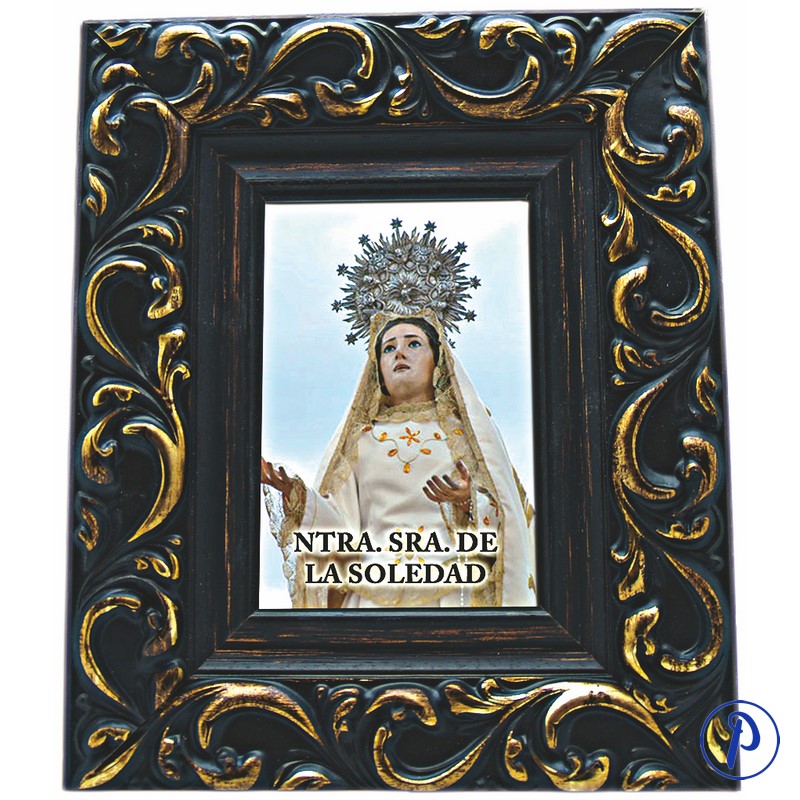 Marco de fotos rectangular con marco de madera con detalles en oro. Imagen personalizada en su interior. Tamaño aproximado 24 x 20 cm.