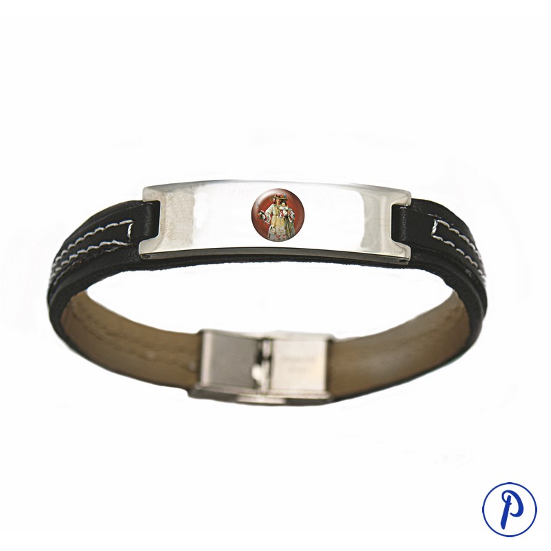 Pulsera de acero con imagen y texto personalizado. Cinta de cuero con cierre metálico.